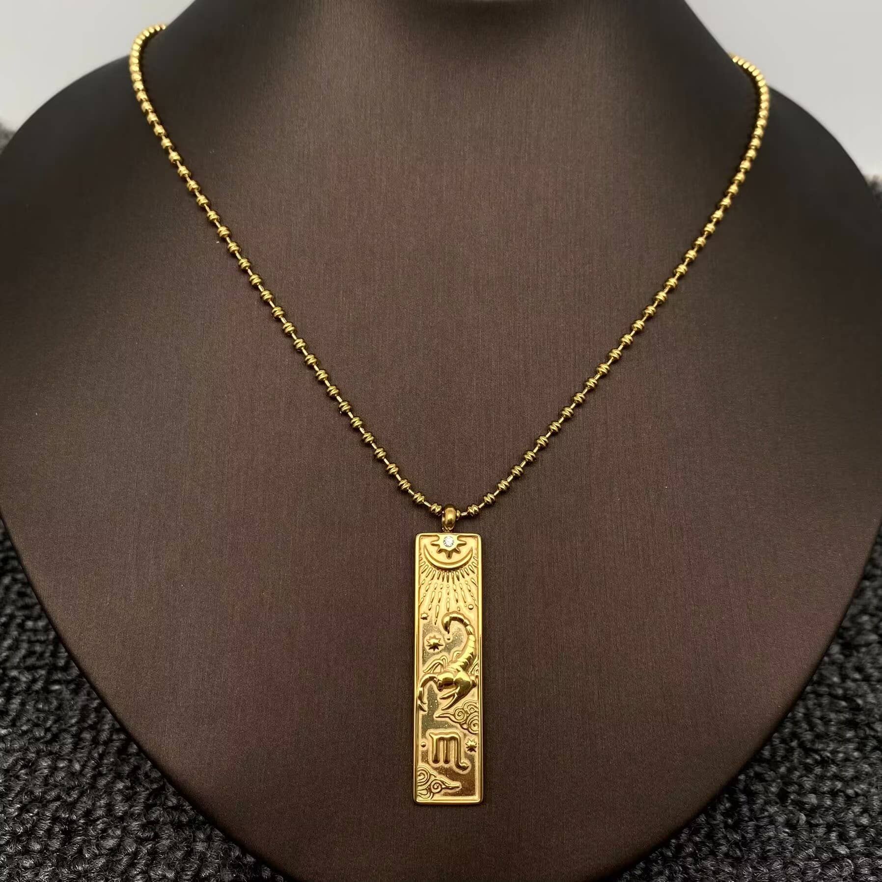 Libra:Rectangular 18K Golden SS Zodiac Signs Charm Necklace