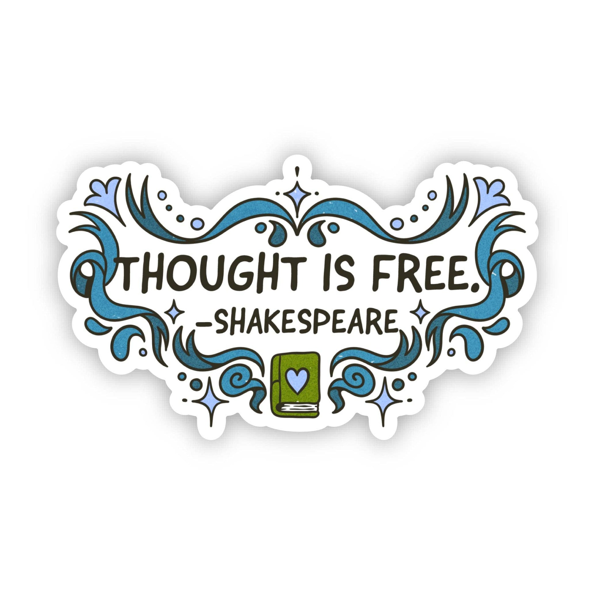 Celebrate the freedom of your mind with this simple, yet powerful reminder "thought is free" Shakespeare quote sticker. High quality vinyl sticker. Great to decorate laptops, water bottles, car windows, coolers, suitcases, bikes, kayaks, phone cases, journals, and more.