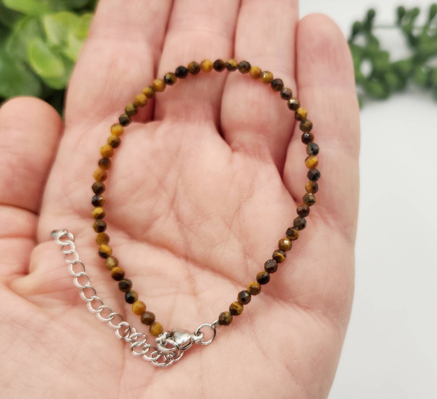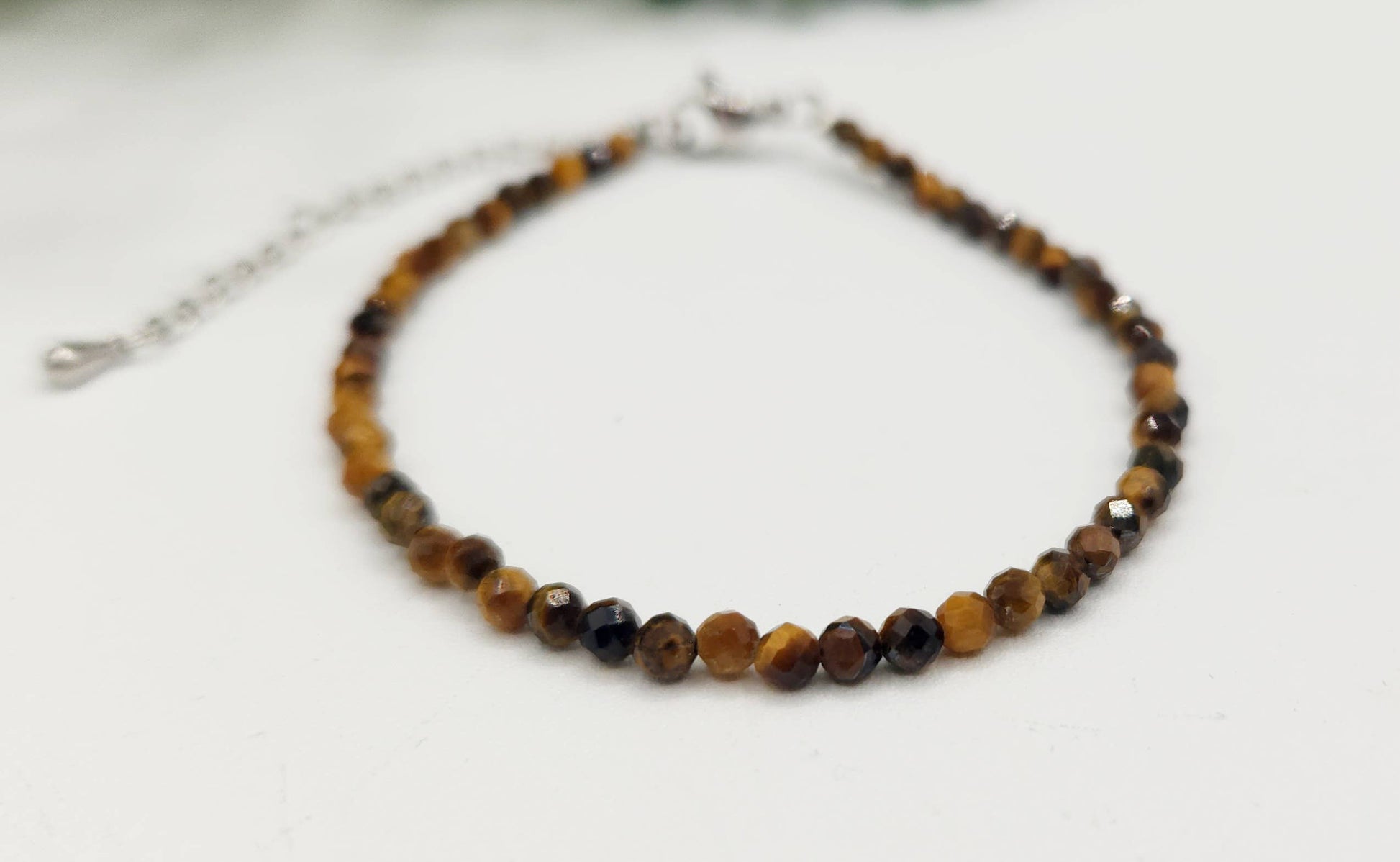 Tiger Eye Bracelet Faceted 3MM w/Silver Color Clasp, Created using 3mm Faceted Beads and is 7.0" Long with a 2" Extender.